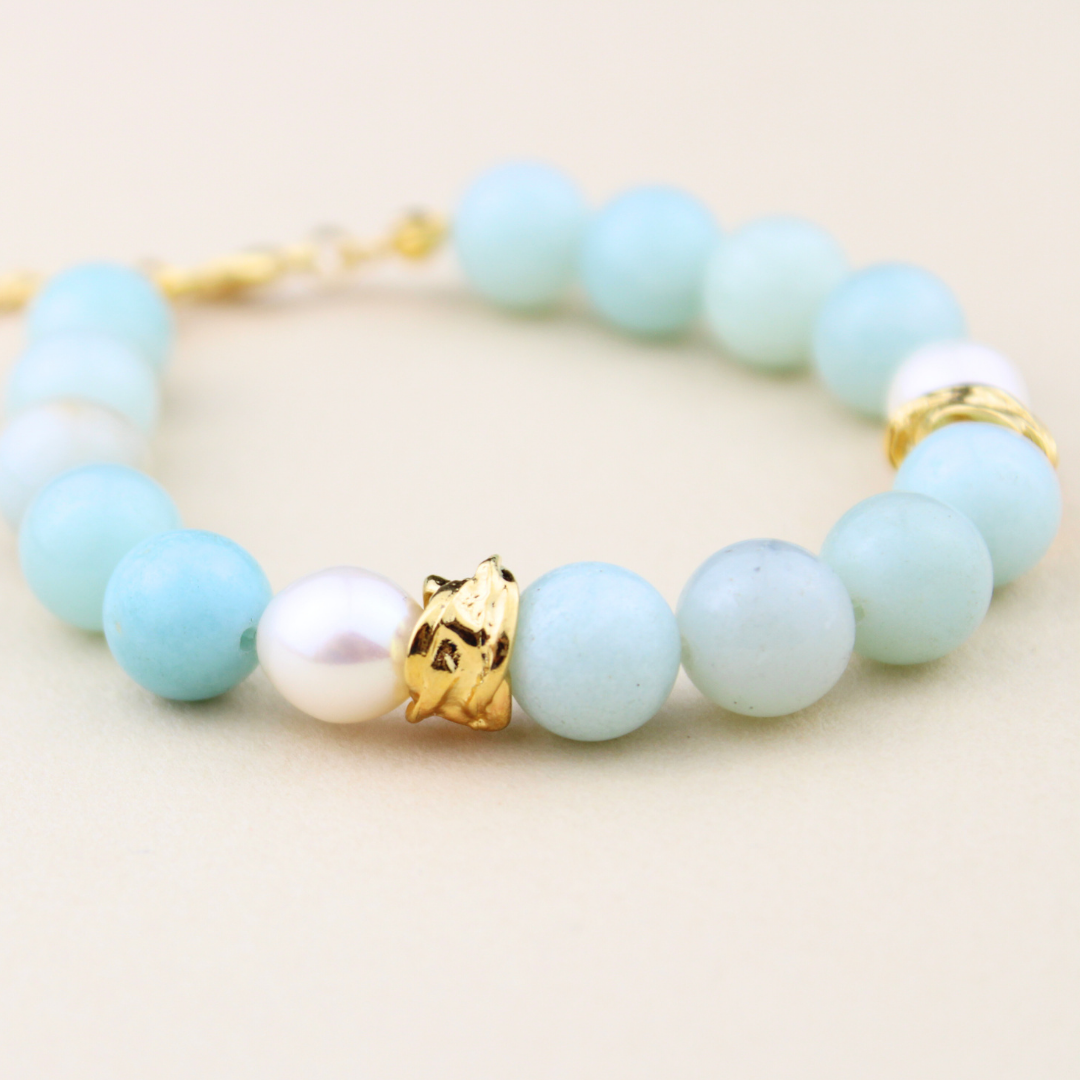 Kullanılan Taş: 12mm Amazonit, İnci
